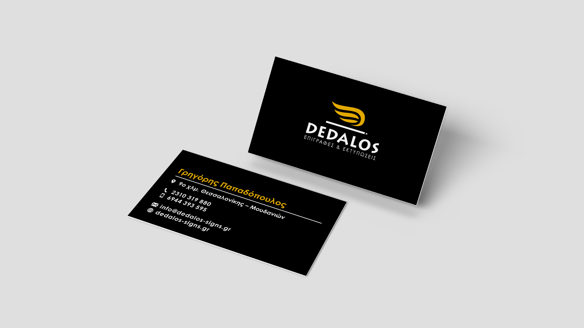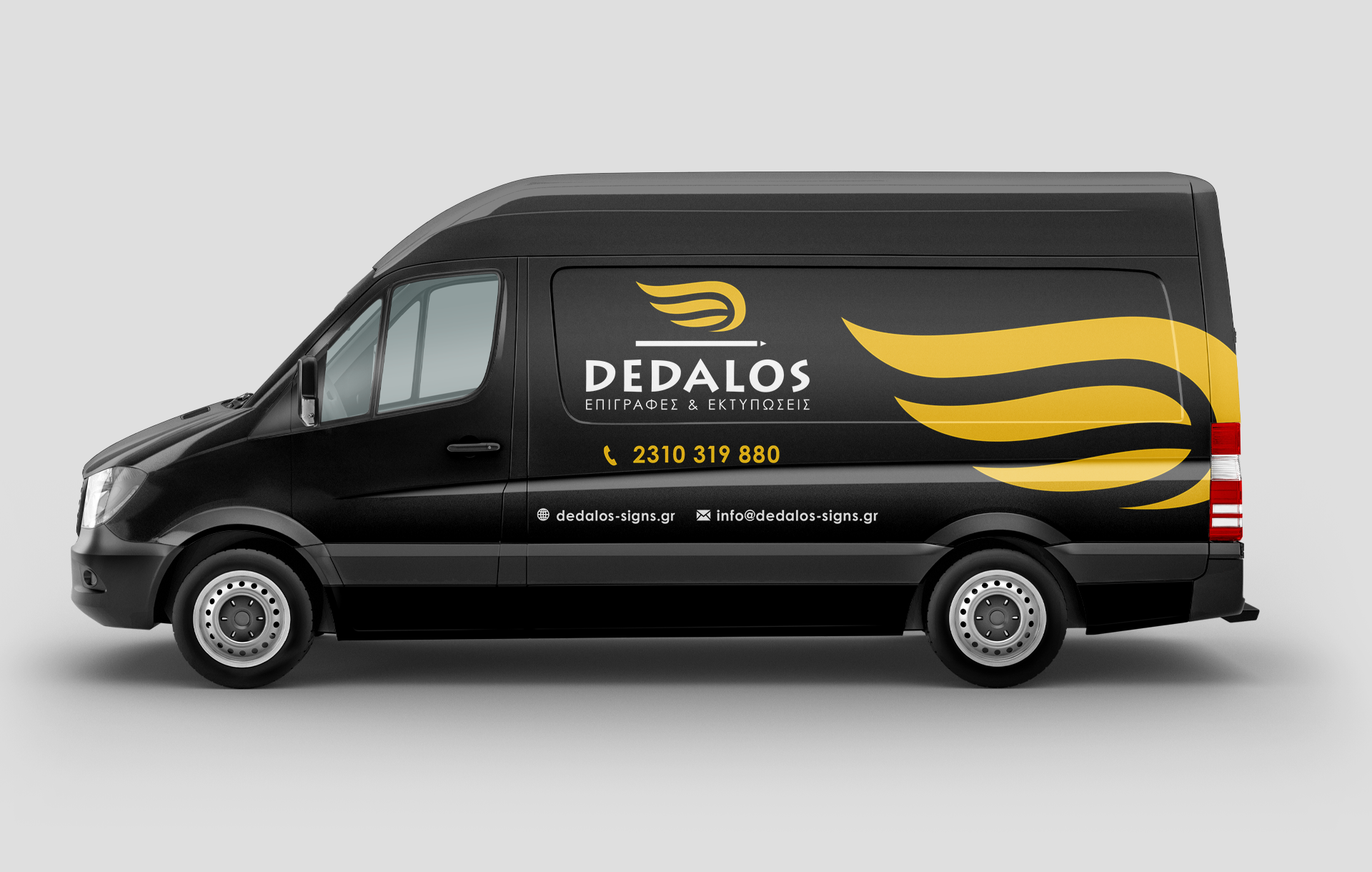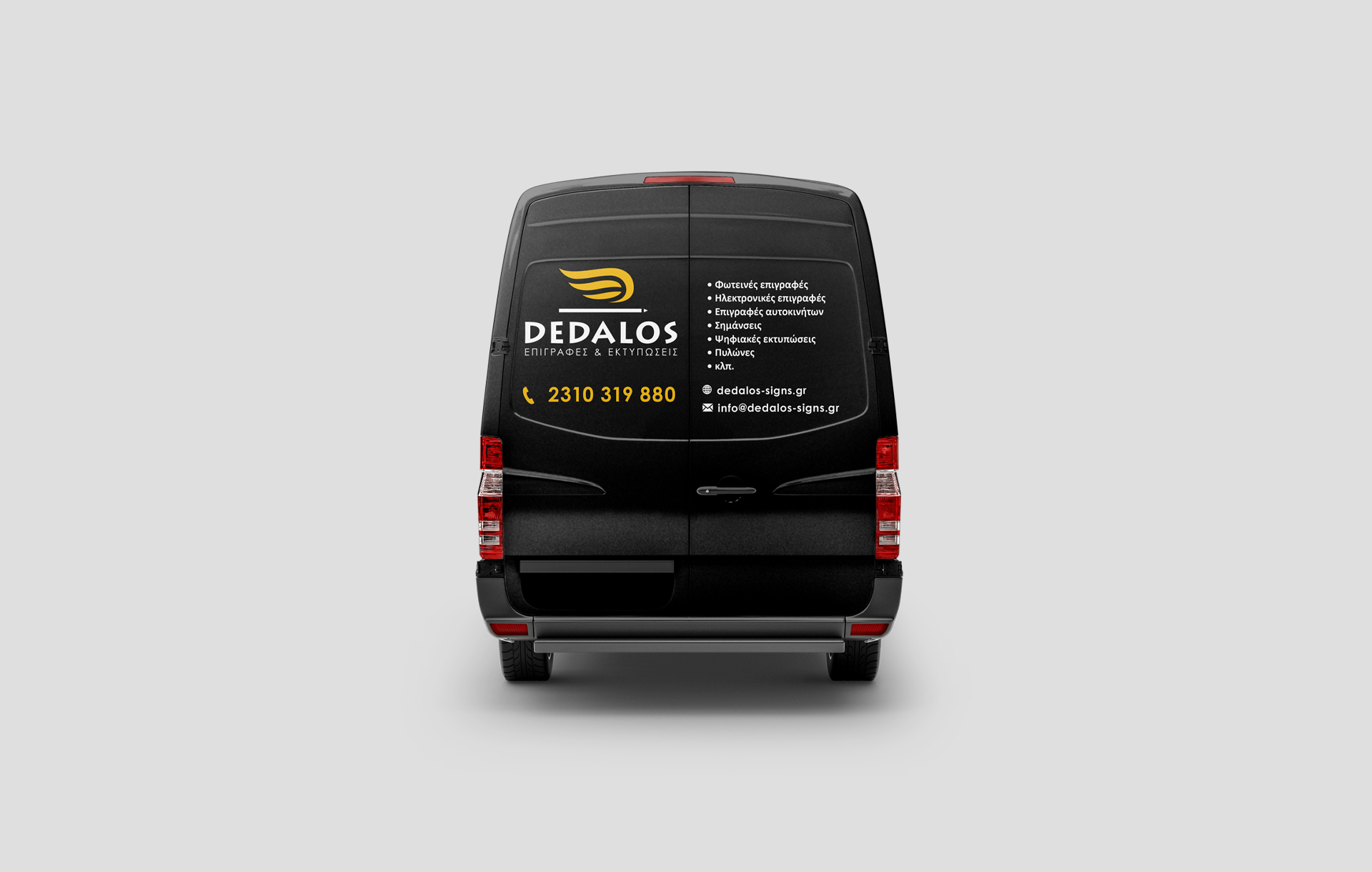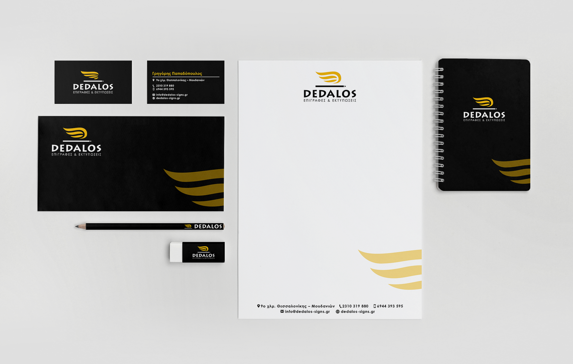 Μετά από πολλά χρόνια λειτουργίας η επιχείρησή Δαίδαλος Επιγραφές ανανεώνεται με τον επανασχεδιασμό λογοτύπου. Το concept παρέμεινε στην ίδια λογική με το προηγούμενο λογότυπο, συμβολίζοντας το φτερό του Δαίδαλου, καθώς ο ήρωας της ελληνικής μυθολογίας Δαίδαλος είναι το όνομα που φέρει η επιχείρηση κι έχει καθοριστικό ρόλο στις αξίες και στις πεποιθήσεις της επιχείρησης και του ιδιοκτήτη της. Το δυναμικό φτερό του Δαίδαλου το οδηγεί ένα μολύβι, το οποίο επιλέξαμε επειδή υπάρχει καθημερινά στην ροή εργασίας στην επιχείρηση καθώς όλες οι δουλειές ξεκινούν πάντα με τον σχεδιασμό με ένα μολύβι.